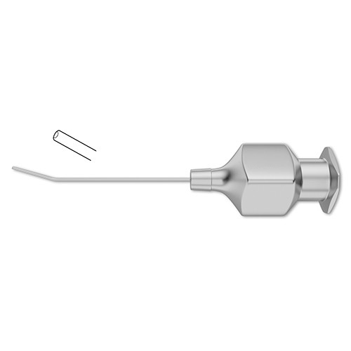 sharp rounded point, 25-gaugeAtkinson Retrobulbar Needle is a commonly used tool in preoperative treatment of ophthalmologic procedures. The needle may be used to perforate the orbital septum in administering an anesthetic or alcohol. Two different gauges are available with the needle depending on surgical preference.