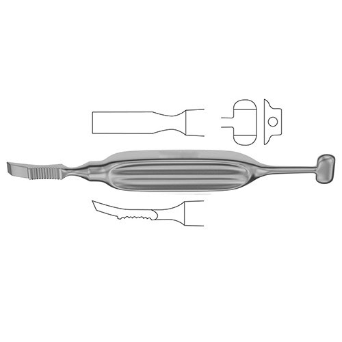 Cameron-Haight Periosteal Elevator is commonly used to elevate layers of soft tissue from the underlying bone. This instrument is ideally suited for use in cardiothoracic procedures for example in thoracic outlet syndrome surgery to protect the vasculature near the first rib. This elevator is double headed with one end featuring a chiseled sharp tip for scraping away near to bone while the opposing end is more rounded and less sharp for more delicate manipulation of soft tissue.