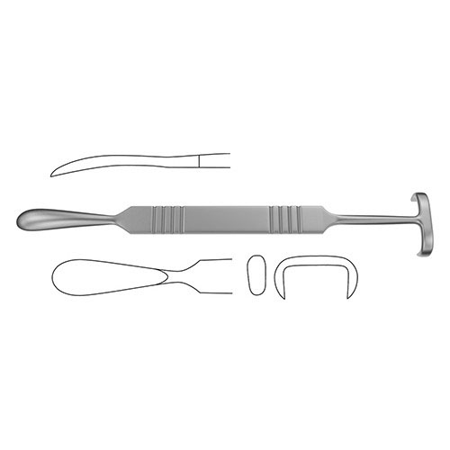 Doyen Rib Raspatory is uniquely designed for use in cardiothoracic surgeries. This raspatory has a bulb shaped handle from which a slightly spiraled hook shape extends. This blade like portion can be used to scrape away at an individual rib which can be necessary in certain nephrectomy approaches. This instrument comes in either left or right handed as well as in adult or pediatric sizes to be suitable for each individual patients needs.